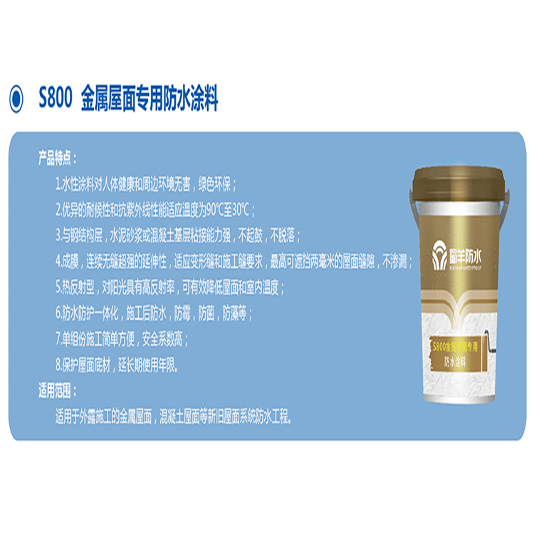 適用于外露施工的金屬屋面,混凝土屋面等新舊屋面系統(tǒng)防水工程。