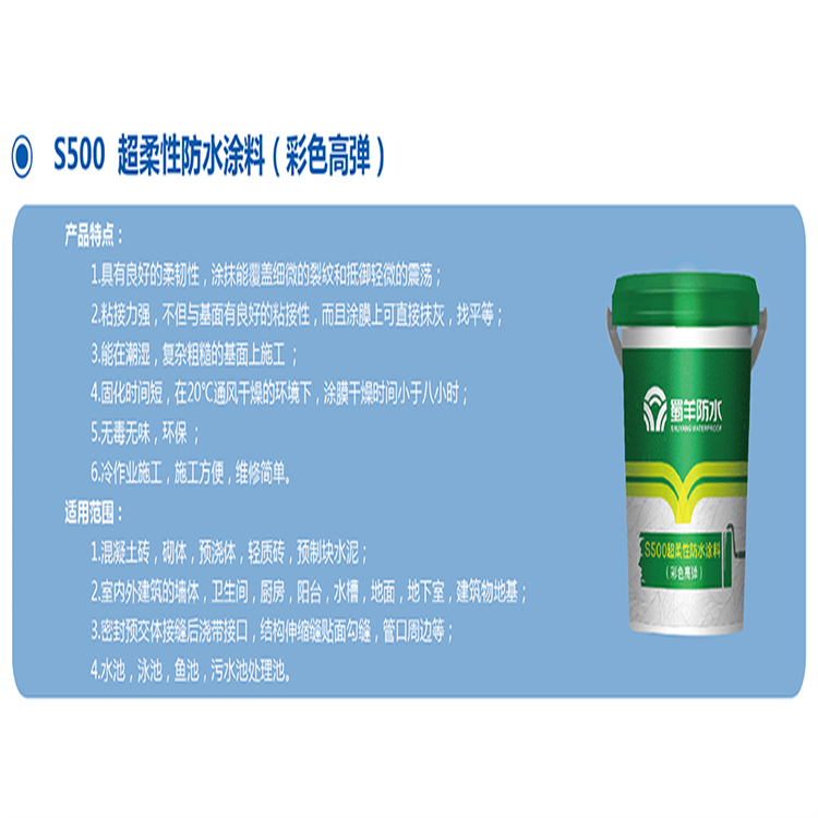 S500超柔性防水涂料(彩色高彈) 污水池泳池防水材料 北新防水