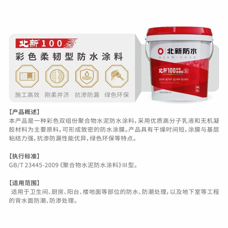 北新100-彩色柔韌型防水涂料施工高效剛?cè)岵?jì) 抗?jié)B防漏綠色環(huán)保