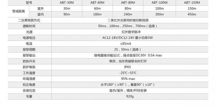 二光束警戒距離: 30~300米【可選】