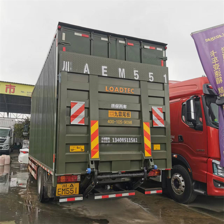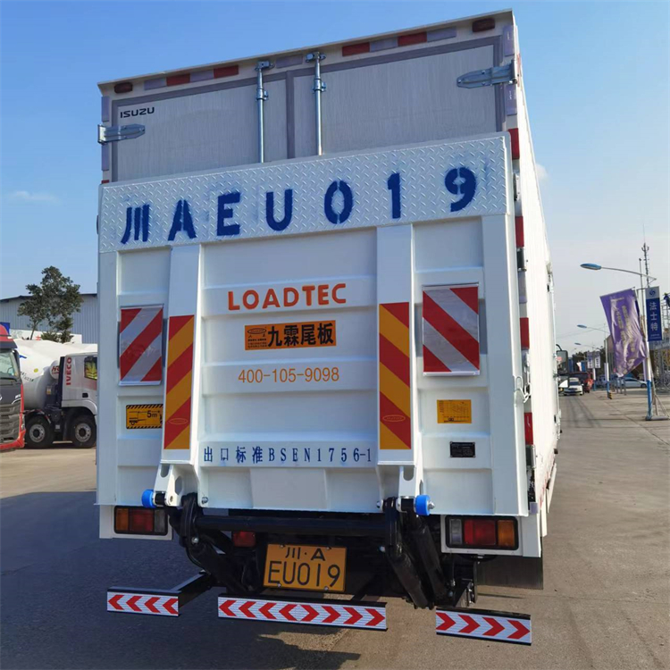 加裝了尾板的廂式車在裝卸貨物時(shí)可不受場地、設(shè)備及人力限制,即使只有一人也可完成貨物裝卸,