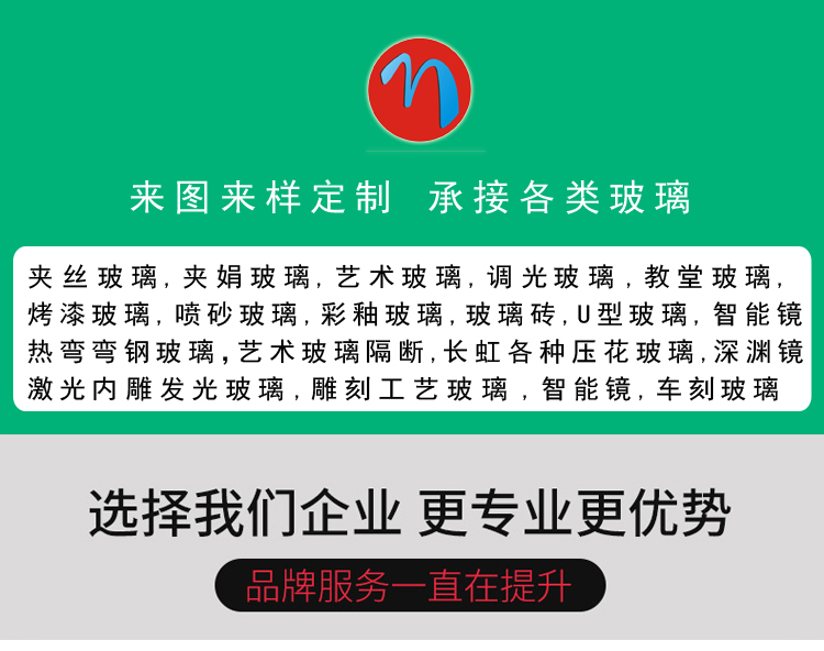 明珠玻璃隸屬于成都輝煌明珠玻璃有限公司,我們的宗旨是為社會(huì)提供綠色環(huán)保、節(jié)能低碳型產(chǎn)品和貼心的的服務(wù)。公司依靠自身強(qiáng)大的產(chǎn)品開(kāi)發(fā)和生產(chǎn)能力,精益求精的生產(chǎn)工藝和貼心的服務(wù),使公司在業(yè)內(nèi)有著良好信譽(yù),產(chǎn)品質(zhì)量穩(wěn)定,產(chǎn)能不斷提高,市場(chǎng)占有率逐年擴(kuò)大。主要運(yùn)用場(chǎng)所:售樓部,酒店,KTV ,家裝等,承接各類(lèi)工程,時(shí)刻以工程質(zhì)量?jī)?yōu)先,客戶利益優(yōu)先的原則,以“品質(zhì)、成本、速度、創(chuàng)新”作為企業(yè)生存法則!我們堅(jiān)信只有共生,只有共贏,才能正真的贏!只有客戶價(jià)值才能使企業(yè)常青!只有創(chuàng)新,只有開(kāi)放,才有未來(lái)!我們?cè)概c您攜手,相生協(xié)力,共贏未來(lái)!