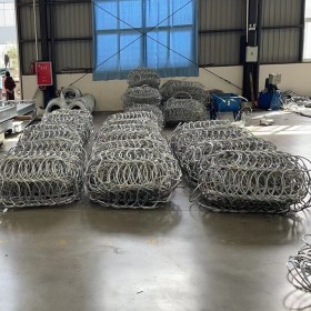 在的沖擊動荷載難以確定的問題,實現(xiàn)了結(jié)構(gòu)的定量設(shè)計。材質(zhì):環(huán)形網(wǎng) 鋼絲繩網(wǎng)、支撐繩和減壓環(huán)構(gòu)造:由鋼絲繩網(wǎng)或環(huán)形網(wǎng)(需攔截