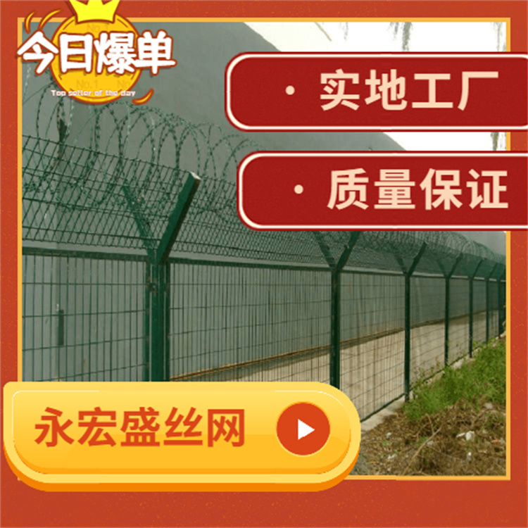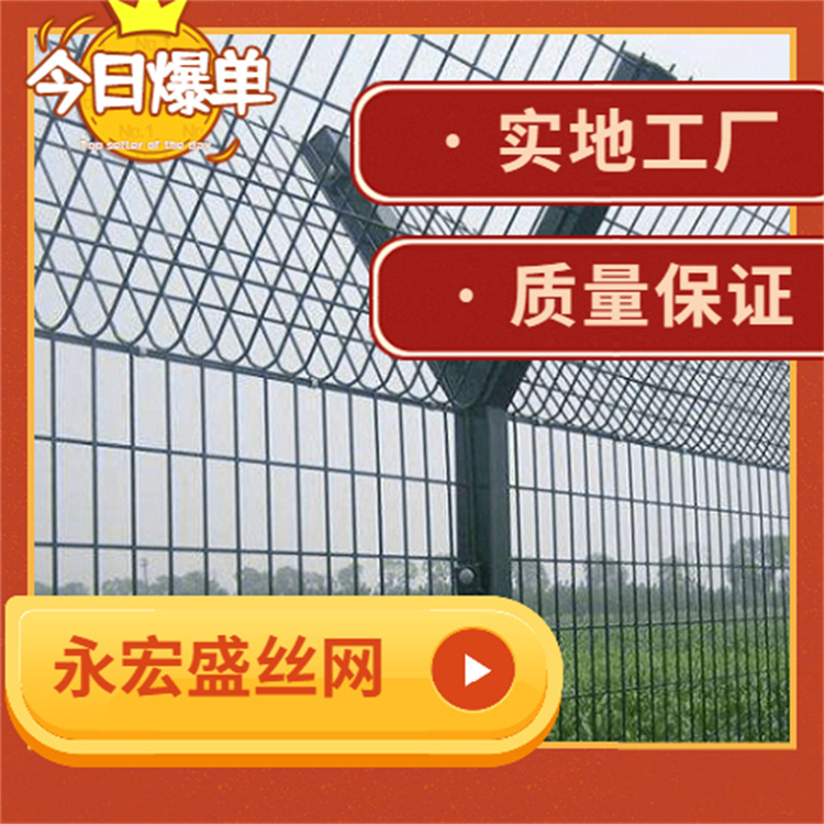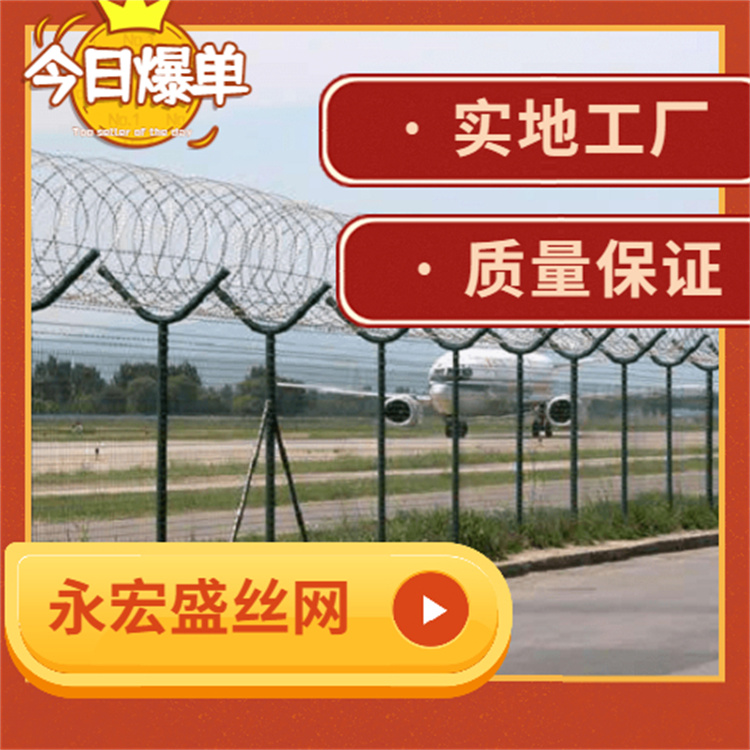 機場護欄網(wǎng)又稱作“Y型安全防御護網(wǎng)”,是由V型支架立柱加強型焊接片網(wǎng),安全防盜連接件和熱鍍鋅刀片刺網(wǎng)組成強度和安全防御性級別很高。被廣泛應(yīng)用在機場,軍事基地等高安全場所。