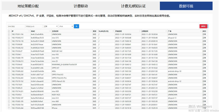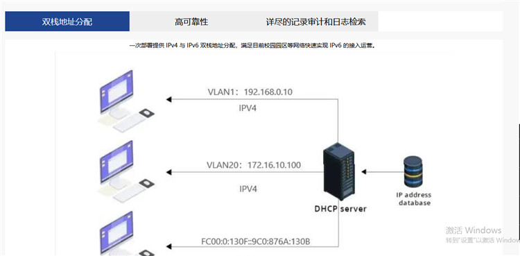 采用DNS + DHCP 系統(tǒng),提供動(dòng)態(tài)的 IPv4 與 IPv6 地址分配以及管理功能,擁有全局可視化管理,針對(duì)用戶地址以及關(guān)聯(lián)設(shè)備信息提供便捷查找,便于審計(jì)溯源。可識(shí)別用戶的多種特征實(shí)現(xiàn)IP地址的智能分配。智能DNS提供雙棧模式下的域名解析服務(wù)。擁有高效而智能的多DNS代理功能,解決多運(yùn)營(yíng)商系統(tǒng)中,如何實(shí)現(xiàn)域名解析的困擾。