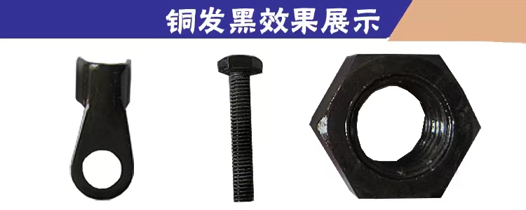 所有的銅及銅合金部件,如各種銅制燈具、五金、工具、標(biāo)準(zhǔn)件、緊固件、機(jī)械零件、模具、光學(xué)儀表和電器產(chǎn)品零部件等,都可以用本工藝進(jìn)行發(fā)黑處理.