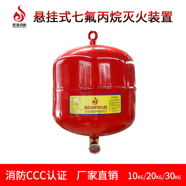 懸掛式七氟丙烷氣體滅火裝置(感溫型)由滅火劑儲(chǔ)瓶、感溫釋放組件、懸掛支架、壓力表等組成,不需安裝滅火劑輸送管道,不需設(shè)置專用的儲(chǔ)瓶間,不用與火災(zāi)報(bào)警系統(tǒng)聯(lián)動(dòng),采用懸掛或壁掛式安裝,當(dāng)火災(zāi)發(fā)生時(shí),感溫玻璃球破裂,感溫釋放組件開啟,直接向防護(hù)區(qū)噴射滅火劑,滅火劑無(wú)管路損失,滅火速度更快、效率更高。
