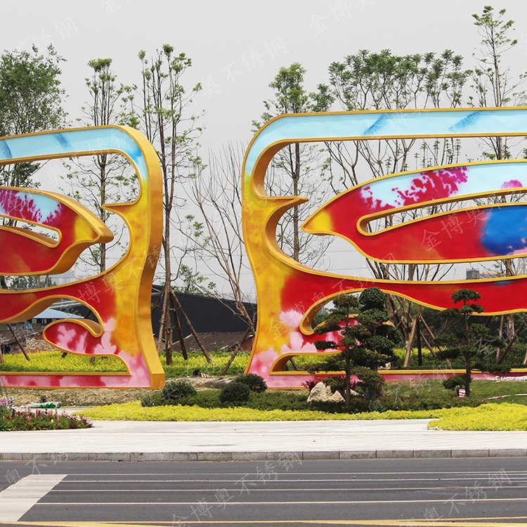定制大型不銹鋼雕塑紅繡腐蝕鐵板景觀不銹鋼文化墻鏤空發(fā)光銹景墻