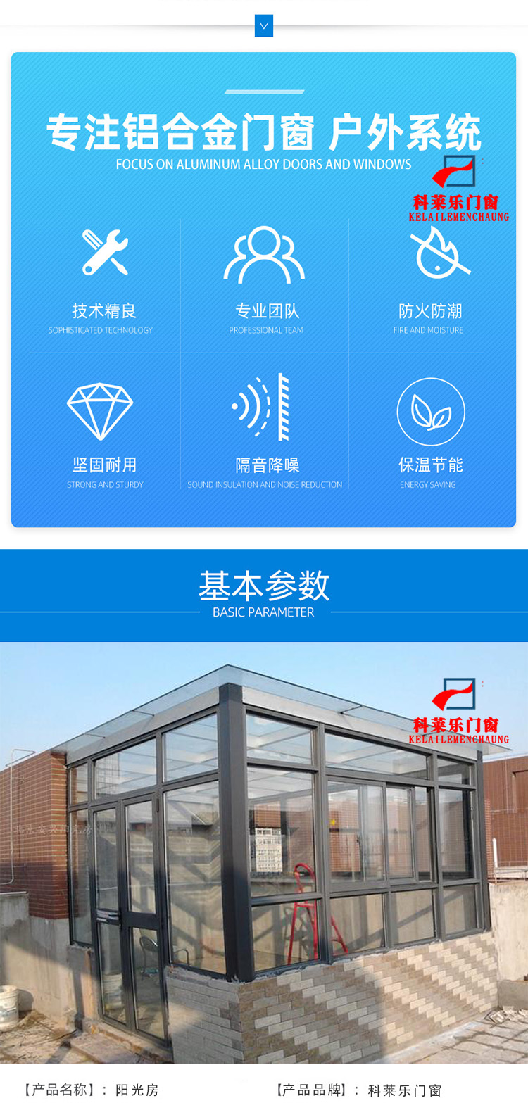 系統(tǒng)陽光房 斷橋鋁門窗戶 鋁合金封陽臺 碳鋼玻璃房定制