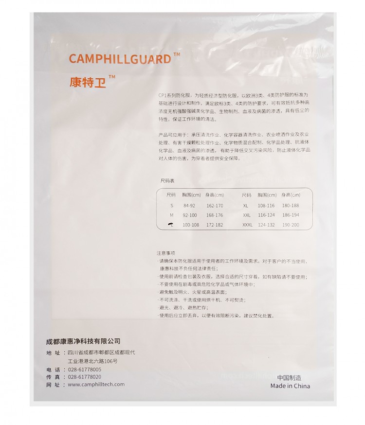 CP4防化服 防噴濺噴射液體 阻隔工業(yè)污染 耐酸堿耐腐蝕