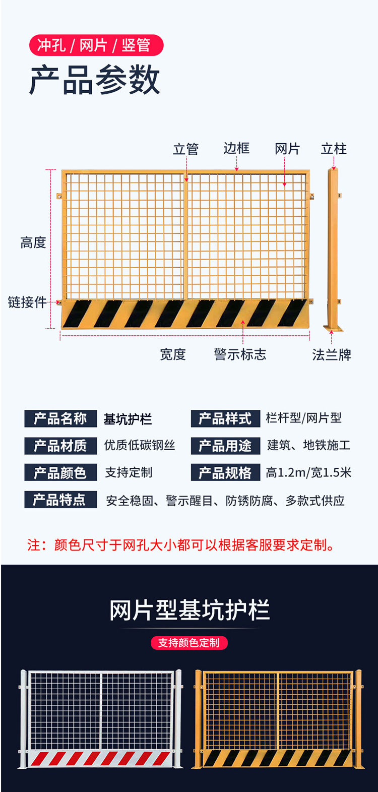 基坑護(hù)欄網(wǎng)狀 工地施工安全 道路工程施工警示 建筑施工警示隔離欄