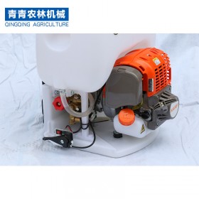 背負(fù)式機(jī)動(dòng)噴霧噴粉機(jī)主要由機(jī)架、離心風(fēng)機(jī)、汽油機(jī)、油箱、藥箱和噴灑裝置等部件組成。