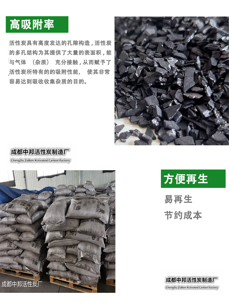 外觀為黑色圓柱形,選用優(yōu)質(zhì)精煤,經(jīng)破碎、磨粉、混捏、成型、炭化及活化等工序制成。具有機(jī)械強(qiáng)度高、形狀規(guī)整、粒度均勻、比表面積大的特點(diǎn),且大孔、中孔、微孔、數(shù)量適當(dāng),吸附速度快、床層阻力小,并易于再生。