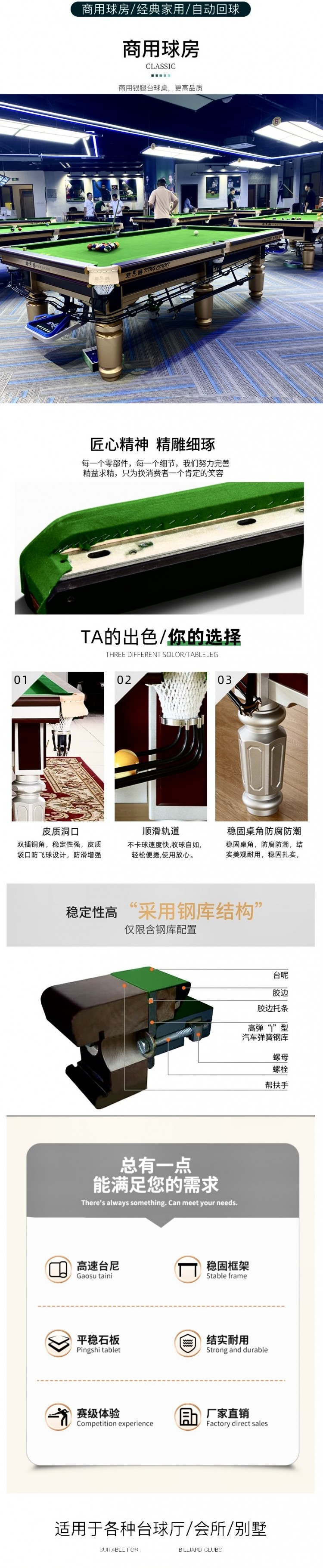 臺球桌標(biāo)準(zhǔn)型商用桌球臺家用成人室內(nèi)球房中式美式鋼庫青石板