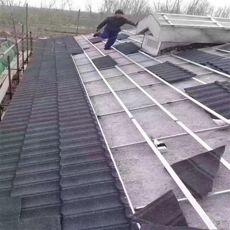 彩石金屬瓦,是采用高新技術(shù)生產(chǎn)的,以防腐性能優(yōu)異的鍍鋁鋅鋼板為基板,以水性丙烯酸酯為粘合劑,以燒結(jié)彩砂為面層,再以耐候性極強(qiáng)的丙烯酸樹脂為外表層(相當(dāng)于油漆)的新型高級(jí)屋面材料。因其美觀、輕巧、耐用、環(huán)保,近年來已經(jīng)成為國際屋面材料的主流產(chǎn)品,國內(nèi)高檔建筑使用。
