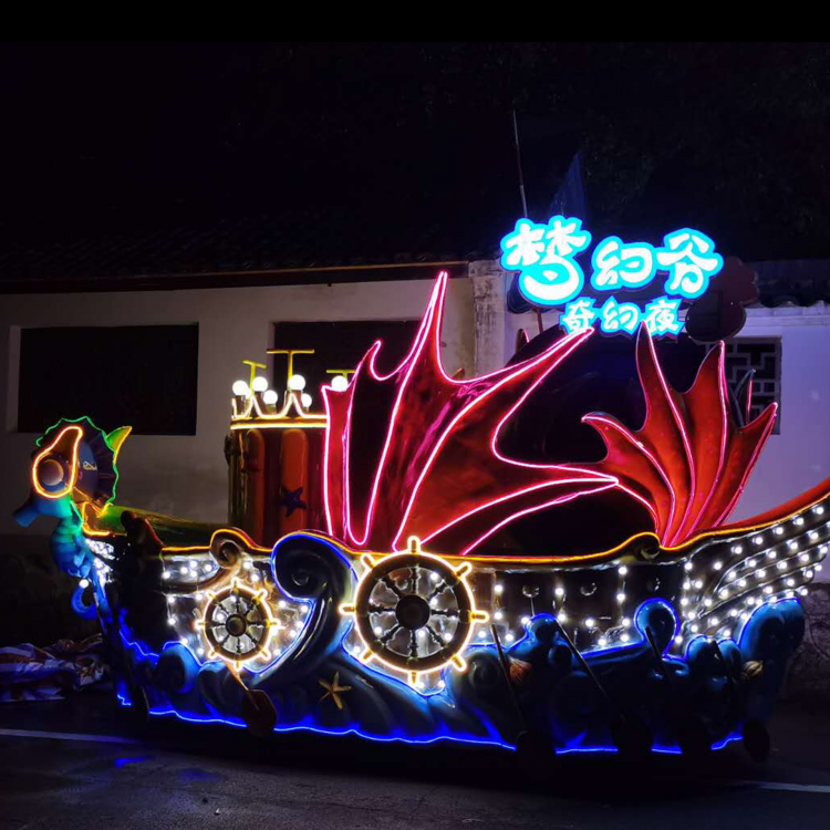 大型花燈不夜城巡游花車(chē)發(fā)光彩車(chē)彩船節(jié)慶游覽裝飾戶(hù)外花燈花船