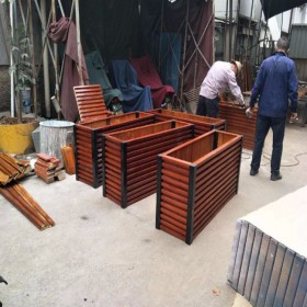 第二、鋁合金花箱表面處理的工藝的選擇。目前各個(gè)城市使用較高的以表面處理成木紋色為主(黃檀、紅檀、紅木、白木紋、雅白等顏色),但采用的工藝不同,對(duì)顏色的穩(wěn)定持 久性起到?jīng)Q定性的作用。大多數(shù)企業(yè)采用高溫?zé)徂D(zhuǎn)印技術(shù),此種工藝在鋁材表面處理后,把帶有木紋顏色的薄膜貼敷在鋁材的表面,然后經(jīng)100攝氏度高溫轉(zhuǎn)印而成,木紋滲透于鋁材的表面大于5um,很容易經(jīng)暴曬之后慢慢褪色,大約2-3年左右。而景觀花箱,對(duì)品質(zhì)要求苛刻的廠家,會(huì)采用進(jìn)口的深度“卡羅”滲透技術(shù),在300攝氏度的高溫,木紋的滲透深度在30um,是普通熱轉(zhuǎn)印工藝滲透深度的6倍,顏色持 久性大約6-9年,比普通熱轉(zhuǎn)印的工藝提升3倍以上。