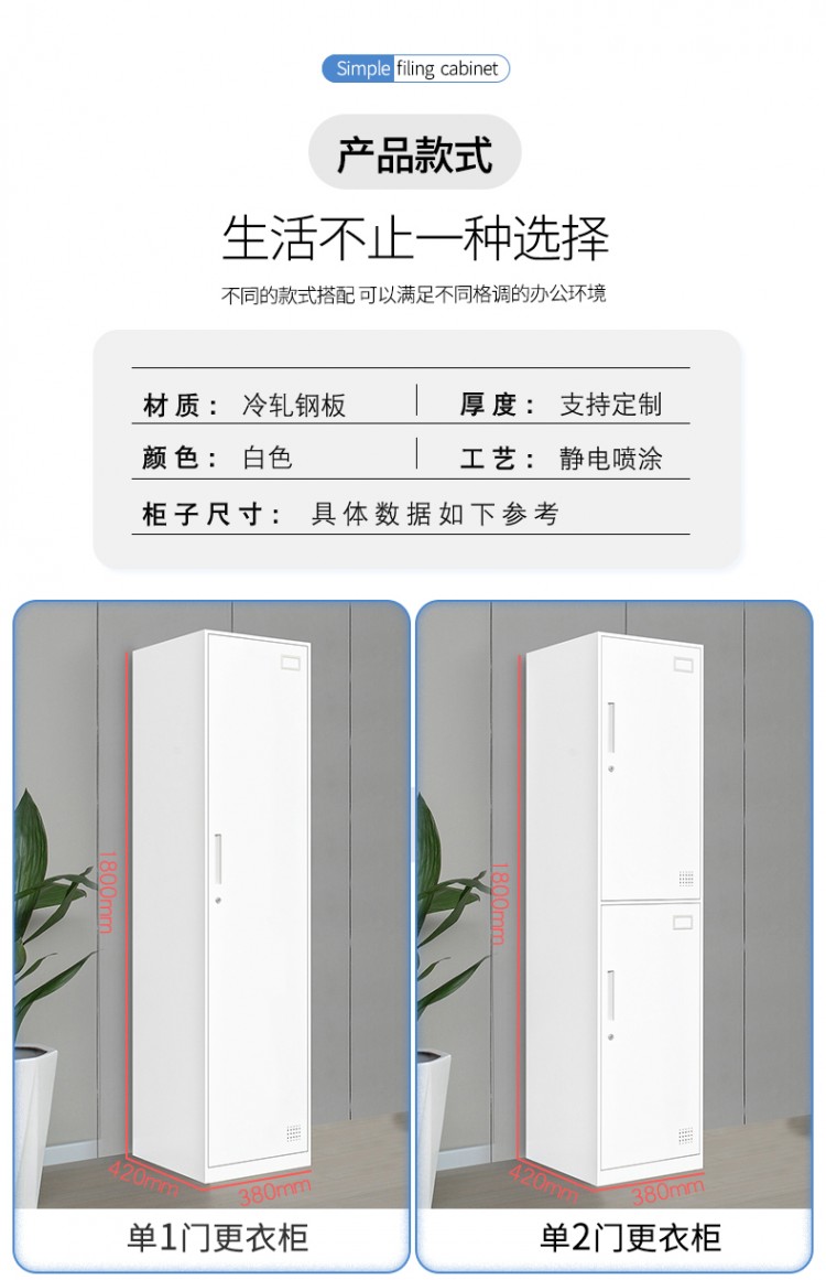星簡 鋼質(zhì)單門更衣柜 辦公室健身房浴室員工帶鎖儲物 廠家直營