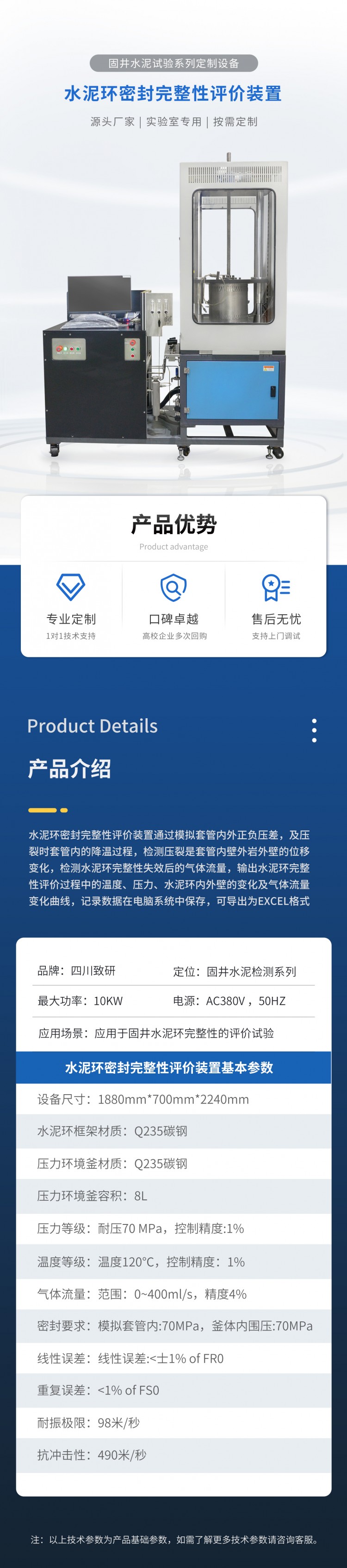 致研科技 非標(biāo)定制實(shí)驗(yàn)設(shè)備 水泥環(huán)密封完整性評價(jià)裝置