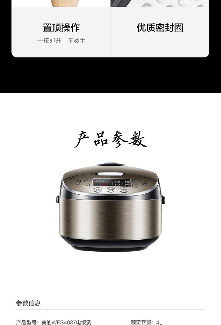 美的MB-WFS4037電飯煲 4L家用智能預(yù)約大容量電飯鍋煮飯