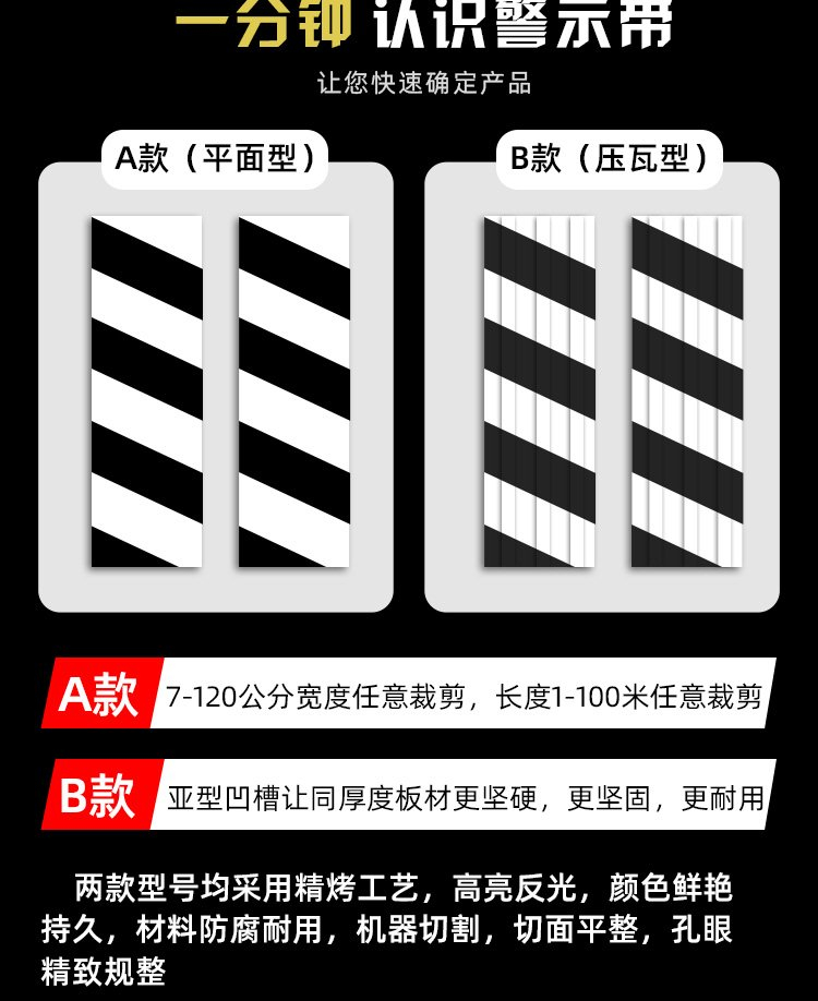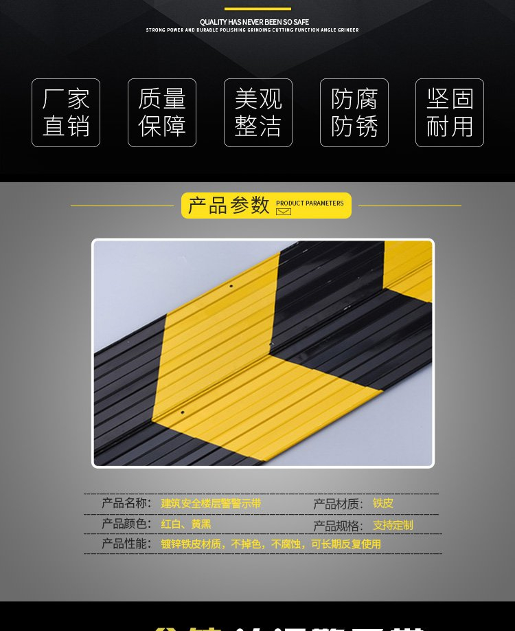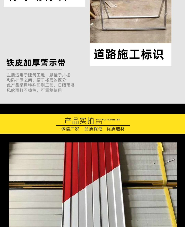 紅白黃黑斜紋條 凹槽安全隔離警示帶 鍍鋅鐵皮警示條