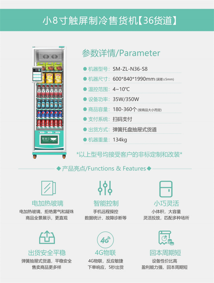 小8寸觸屏制冷售貨機(jī) 36貨道 自動掃碼常溫售貨機(jī)