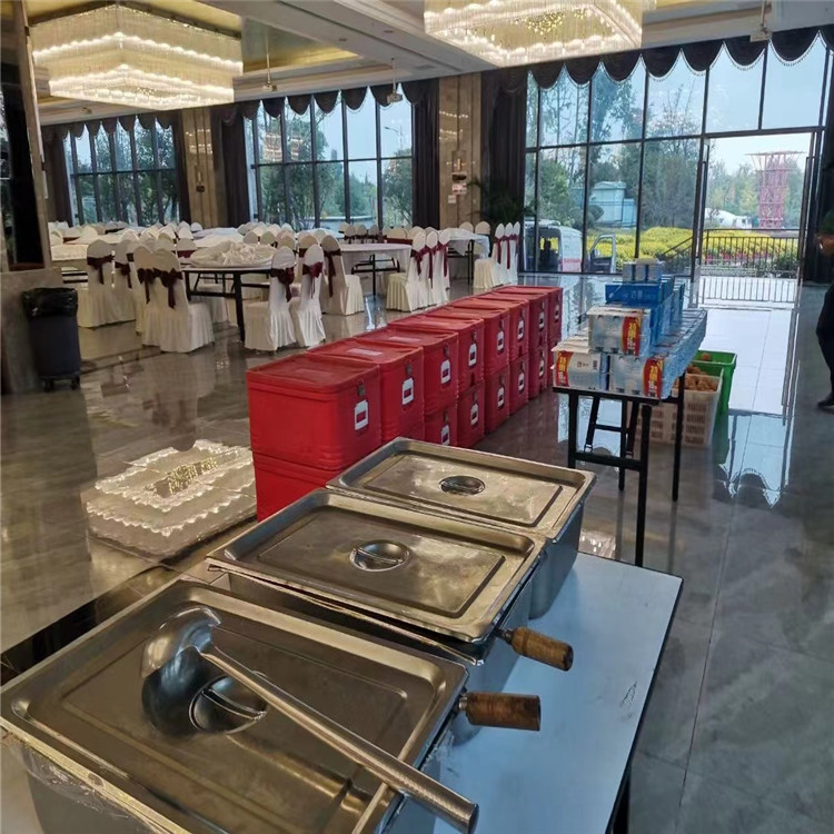 將在我公司加工的成品,分裝到專門(mén)的食品箱或桶中,然后裝入保溫箱,用送餐車(chē)輛配送到指定地點(diǎn),我公司服務(wù)人員按客戶要求用散打、自助等分餐方式為就餐人員供餐。