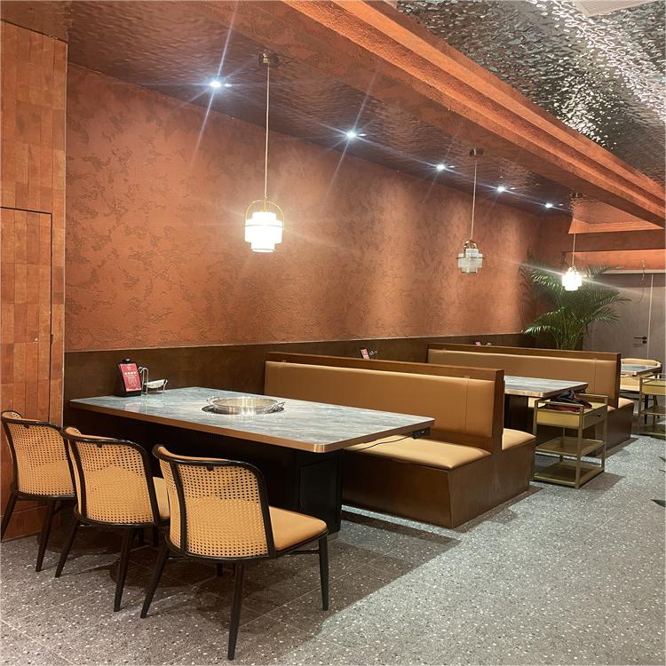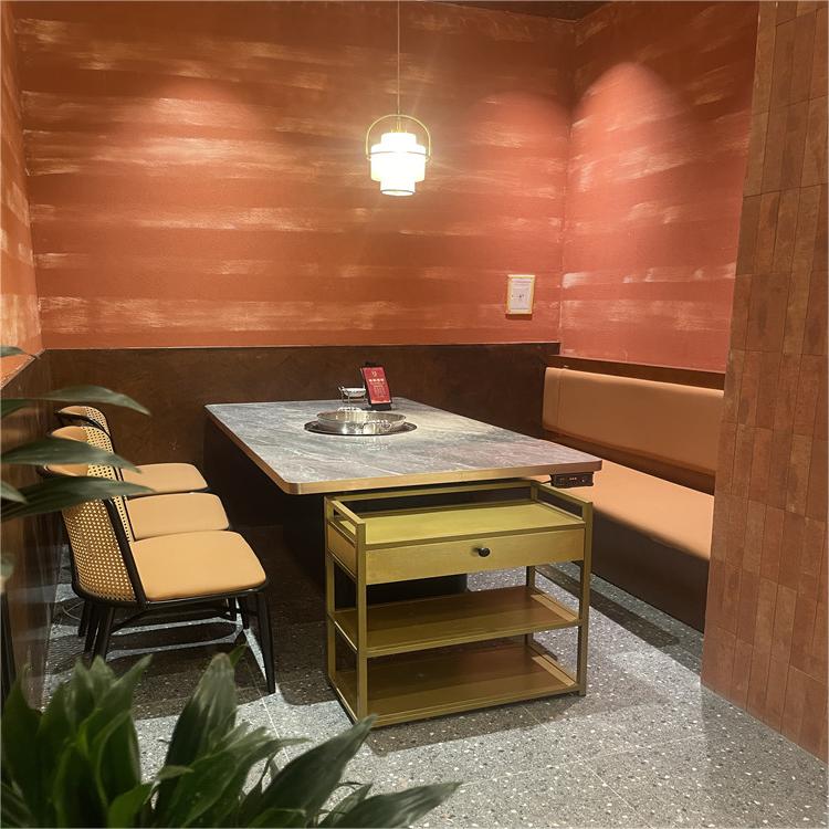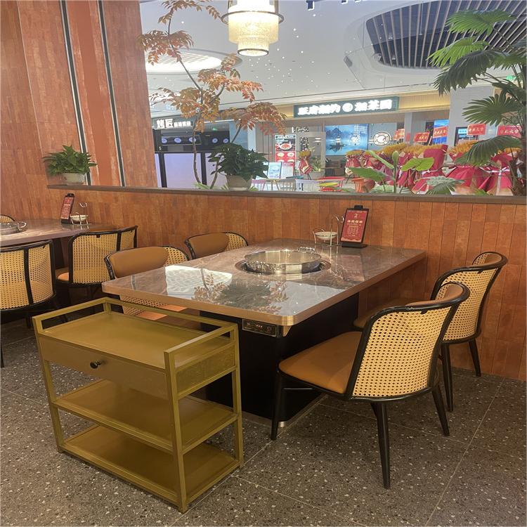 潮汕牛肉火鍋桌椅1桌8椅 圓形小電磁爐自助火鍋臺 精藝美家具廠家訂制批發(fā)