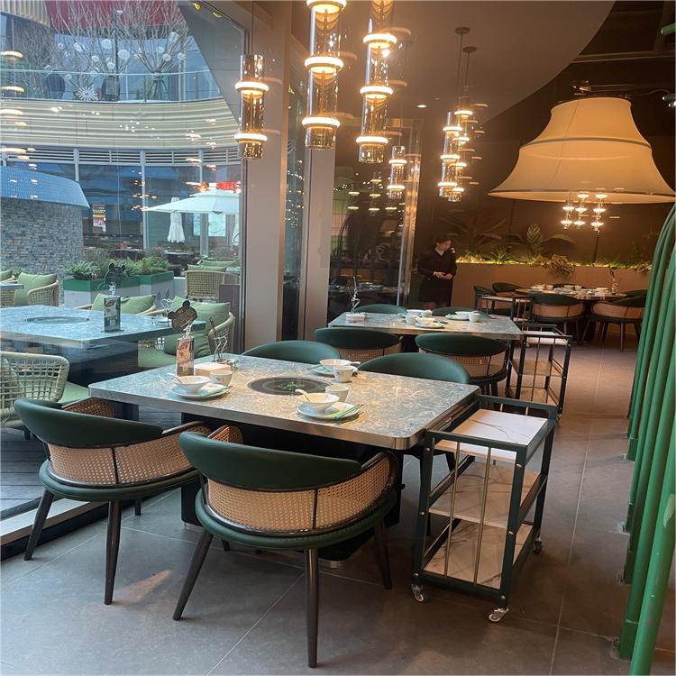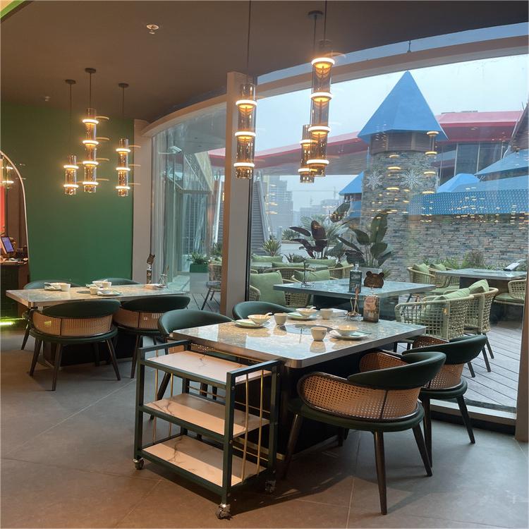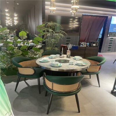 湯鍋店家具 定制無(wú)煙湯鍋餐桌商用一體大理石火鍋