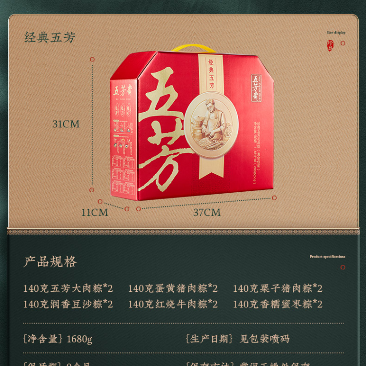 五芳齋粽子套裝 經(jīng)典禮盒6口味12粽