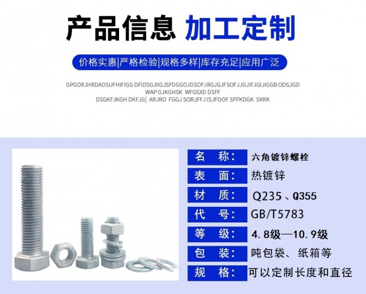 4.8、6.8、8.8級(jí)高強(qiáng)度外六角 熱浸鋅電力鐵塔 光伏熱鍍鋅螺栓