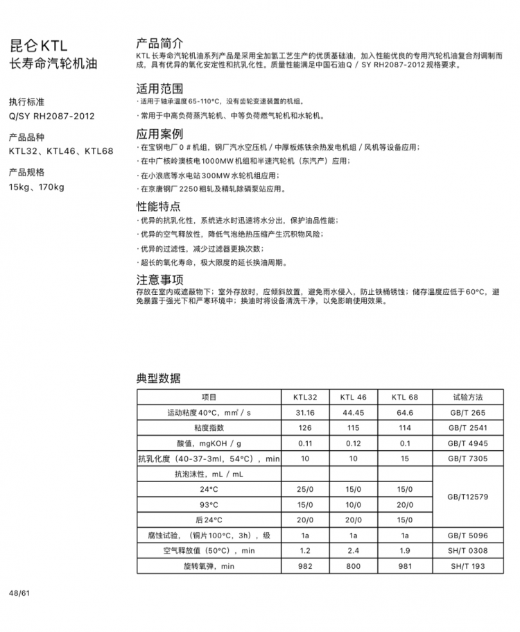 昆侖 汽輪機(jī)油 L-TSA 46號(hào) A級 防銹 抗氧 透平油