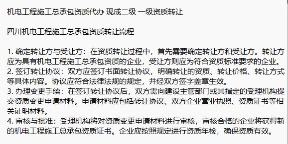 機(jī)電工程資質(zhì)代辦 全國可辦 機(jī)電總包二級資質(zhì)轉(zhuǎn)讓費(fèi)用