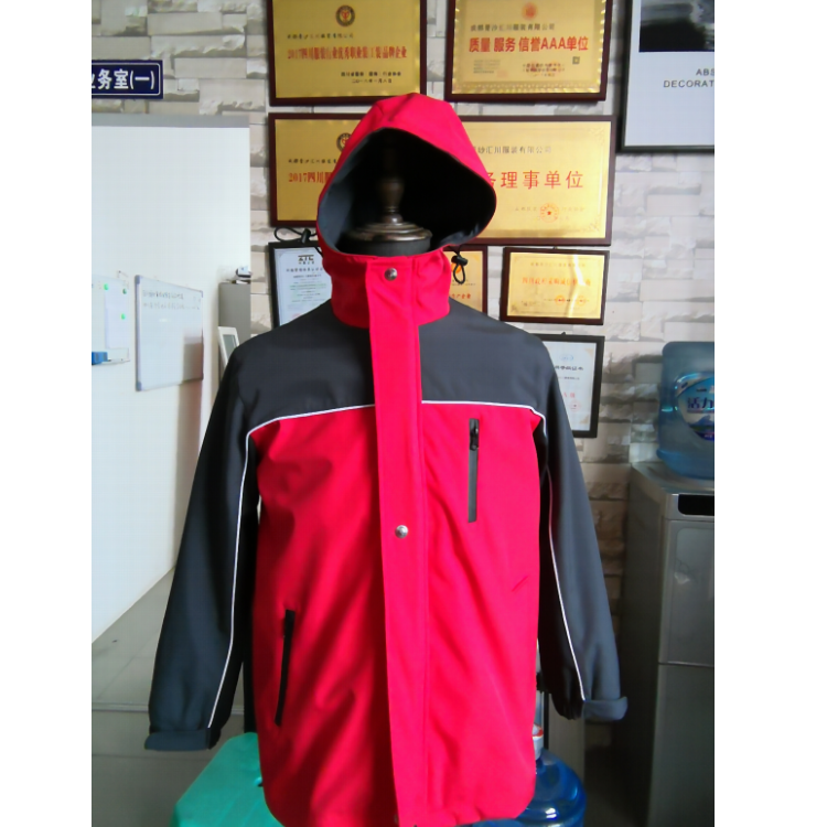 可脫套學(xué)生沖鋒衣 袖口處做粘貼防風(fēng)保暖, 內(nèi)里抓絨面料,保暖舒適。拉鏈縫接處走線(xiàn)整齊