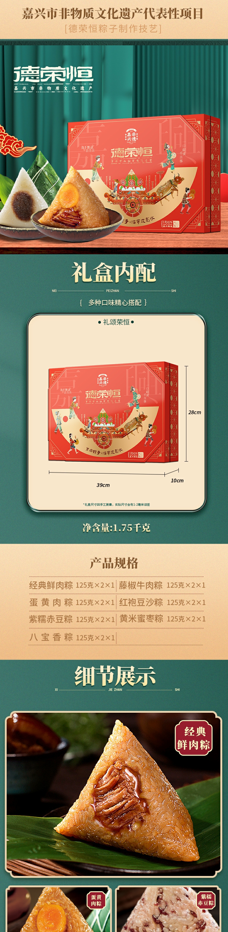 德榮恒 禮盒禮頌榮恒1750g 粽子盒裝團(tuán)購端午節(jié)送禮禮盒工廠大量批發(fā)