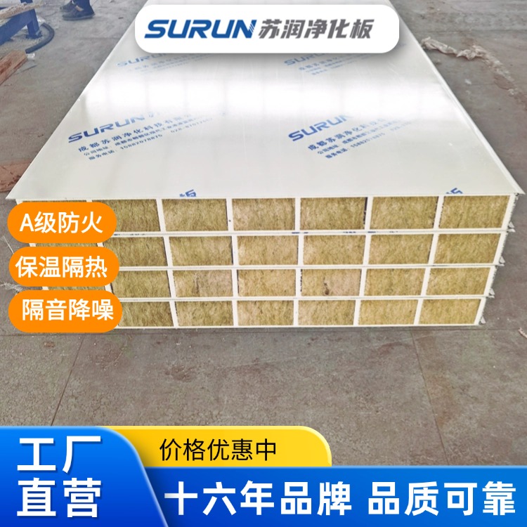 中空玻鎂巖棉凈化板 彩鋼復(fù)合板 無塵車間工程 潔凈板