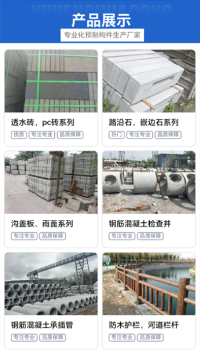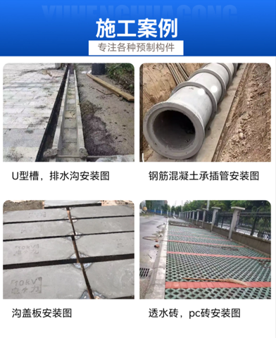 市政基建類‌:鋼筋混凝土檢查井、承插管、U型槽、排水溝、雨蓖;
