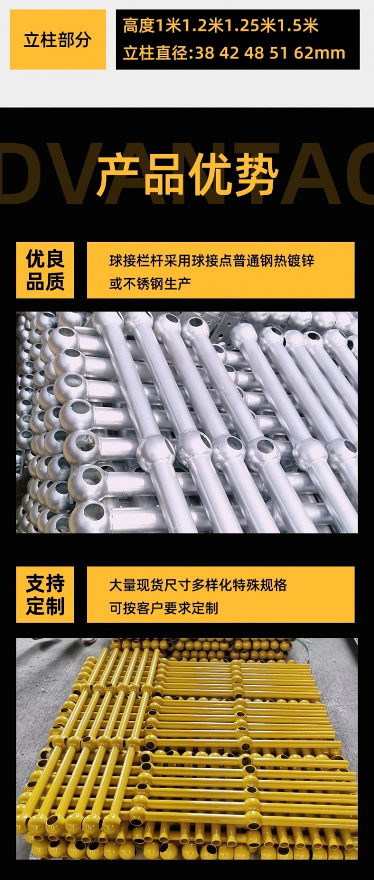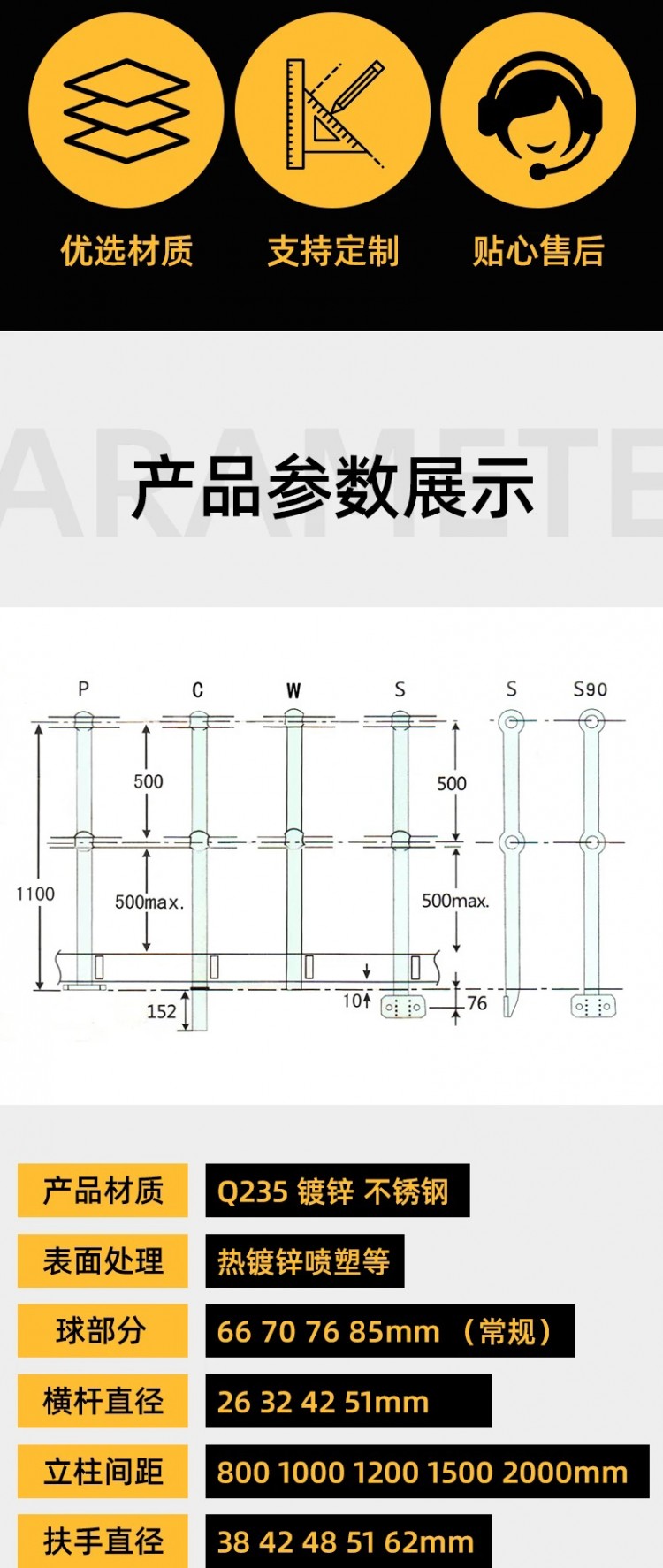 帶角度樓梯欄桿扶手 帶底座球型立柱 異形球接欄桿
