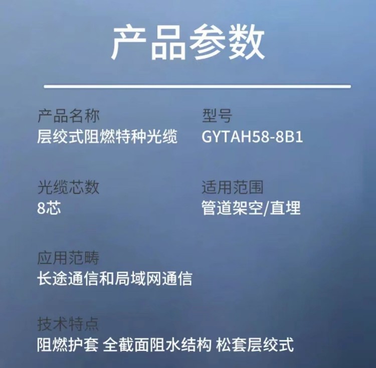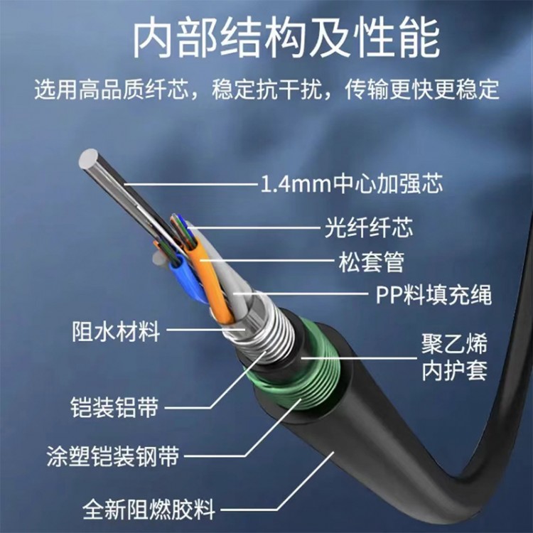 GYTAH58鎧裝阻燃光纜4芯12芯24芯48芯-144芯鐵路地埋室外光纜廠家