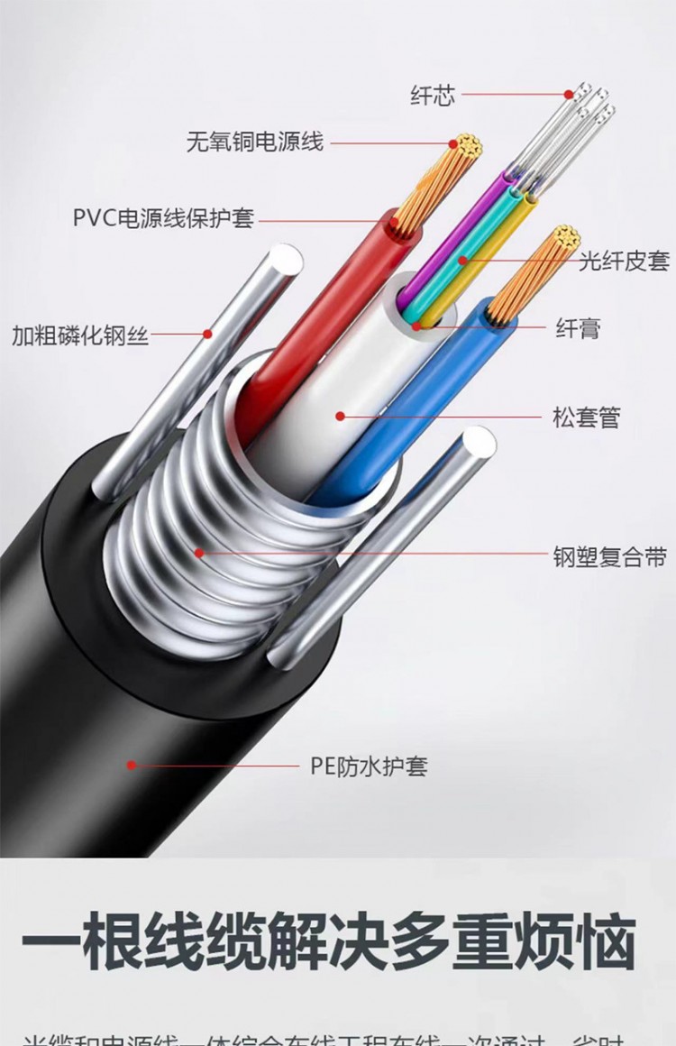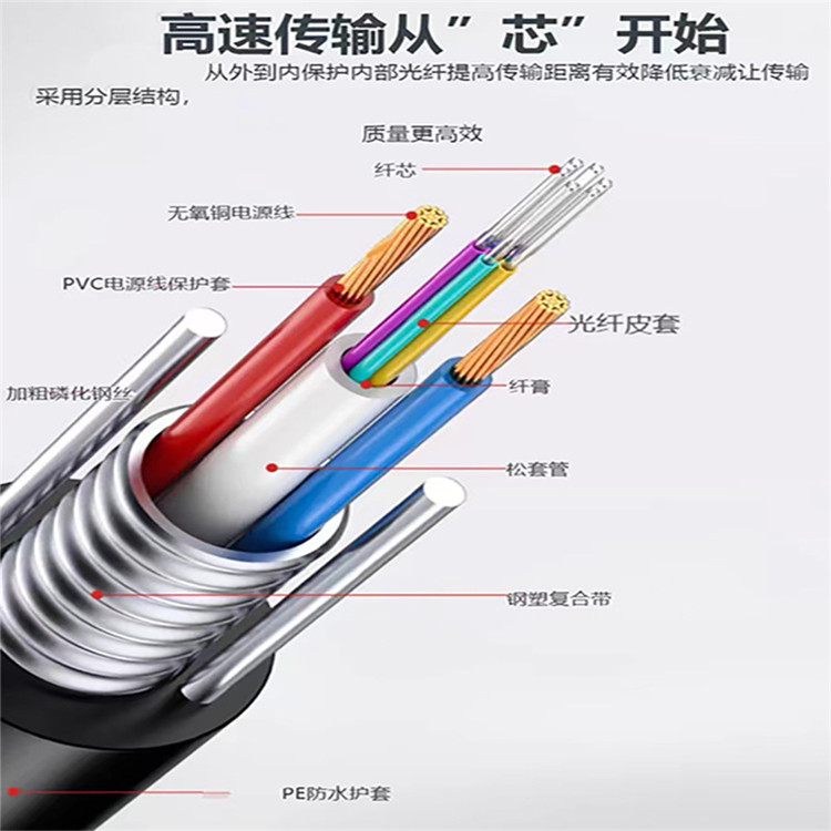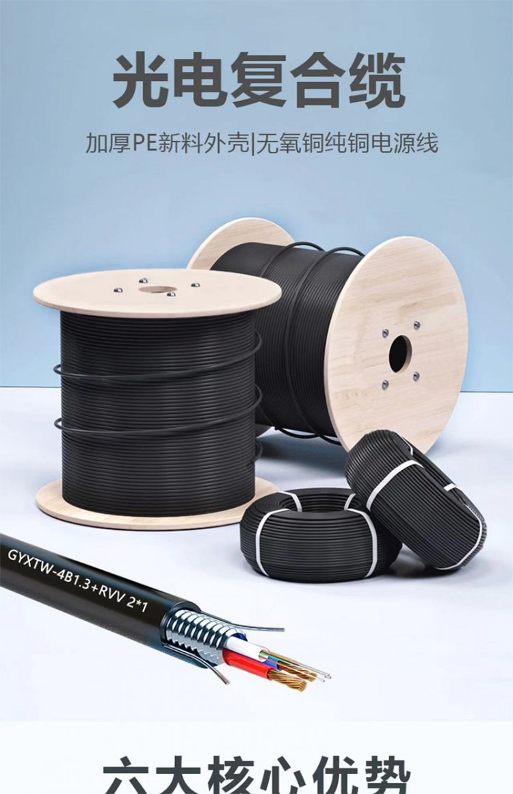 光電復合光纜4芯6芯8芯12芯電源一體線無氧銅1_1.5_2.5平方復合纜