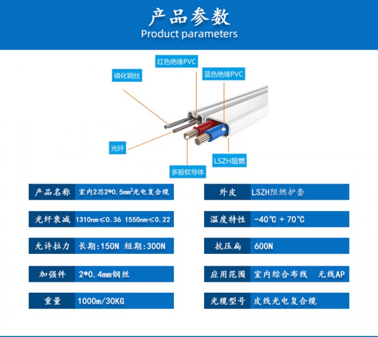 室內(nèi)光電復合纜皮線光纖電源一體線GJXH-2芯+2_05平方復合光纜