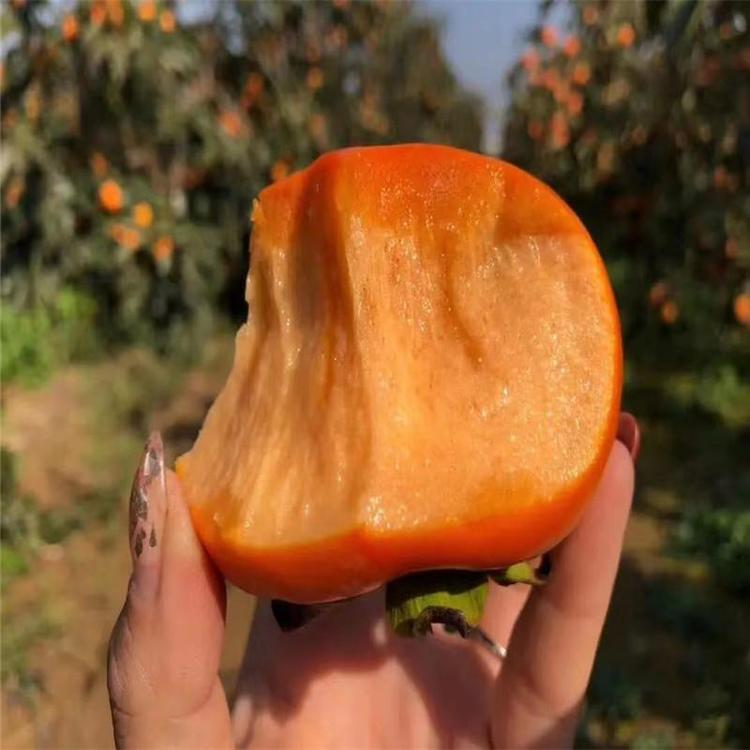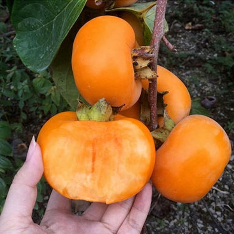 日本甜柿子苗品種樹勢強健,樹姿少直立,枝條粗短,節(jié)間短,分枝多,易密生,成果后樹勢易衰,需配植授粉樹授粉,果實扁圓形,頂部稍洼陷,橫斷面呈方形,果面有縱溝,其中4條較顯著,單果200克,果皮橙黃色至橙紅色,果肉紅黃色,肉質(zhì)細密松脆,果汁較少,味甜品質(zhì)優(yōu),少籽10月下旬至11月上旬成熟。