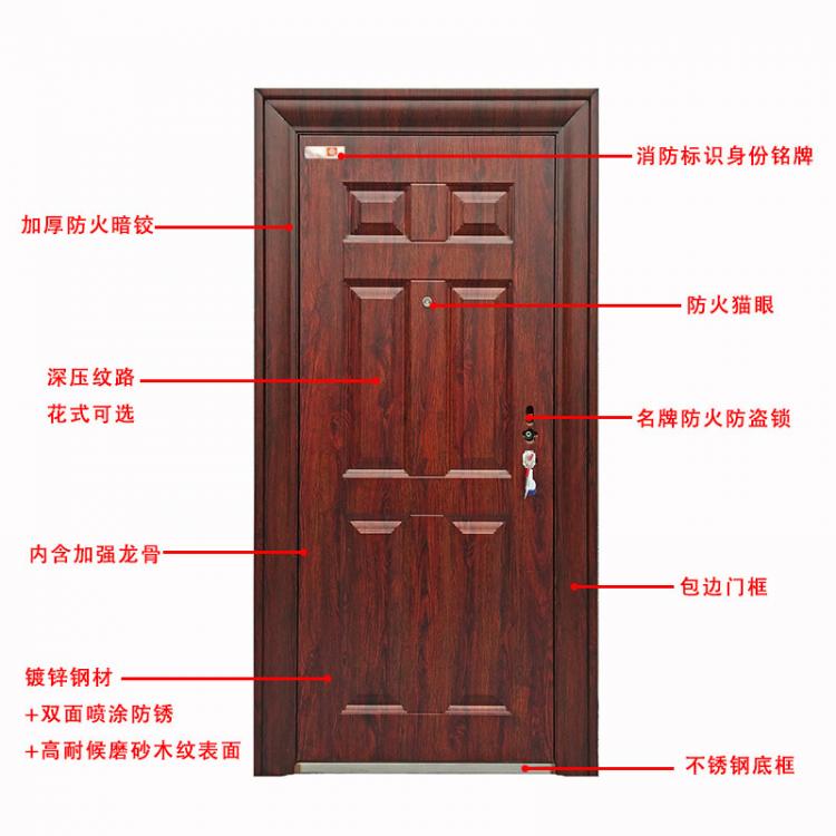 3、采用名.牌防火防盜鎖、加厚防火鉸鏈,保證門的使用壽命。