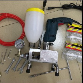 防水堵漏高壓注漿機(jī),是一種用于結(jié)構(gòu)高壓化學(xué)灌漿,使用單液化學(xué)灌漿材料的專(zhuān)業(yè)機(jī)種,有超高壓力不需氣壓源,施工快速。機(jī)身本體僅重5公斤,攜帶省力移動(dòng)方便。它徹底解決了依賴(lài)傳統(tǒng)手壓氣源作動(dòng)力及攜帶笨重機(jī)械的不便;結(jié)構(gòu)設(shè)計(jì)科學(xué)簡(jiǎn)易,不需特殊訓(xùn)練即可維修,并新添加了人性化的自吸進(jìn)料系統(tǒng)。其利用機(jī)械的動(dòng)力,可在3-6秒內(nèi)提升至4500psi(300kg/cm2)以上工作壓力,將液體的止水劑可有效灌注至0.1mm的細(xì)微裂縫中,施工效率較傳統(tǒng)技術(shù)快三倍以上,防水止漏效果更為有效。是建筑工程、地下工程、水利工程、環(huán)保工程、市政、地鐵、隧道、涵洞工程止?jié)B堵漏施工、裂縫補(bǔ)強(qiáng)的設(shè)備,是專(zhuān)業(yè)止水施工者佳的選擇    特點(diǎn):便攜:體積小、重量輕(機(jī)身本體重7.5kg)、攜帶方便、操作簡(jiǎn)單。高 效:可在幾秒內(nèi)達(dá)到0---50Mpa工作壓力,工藝先進(jìn)、省時(shí)、省力、效率高。安 全:技術(shù)可靠、結(jié)構(gòu)合理、使用安全。壓力持續(xù):持續(xù)高壓使藥劑可有效將砼結(jié)構(gòu)內(nèi)微隙、微縫、微孔、毛細(xì)填充堵塞。結(jié)構(gòu)無(wú)損:對(duì)砼裂縫直接安裝注漿嘴進(jìn)行注漿,不剔槽,不埋管,對(duì)結(jié)構(gòu)無(wú)損。帶水堵漏:對(duì)各種縫隙滲漏、蜂巢滲漏、地下涌水,能直接帶水注漿堵漏。漿液可有效注到裂縫深處。配套使用材料范圍廣泛:聚氨酯、環(huán)氧樹(shù)脂、丙烯酸樹(shù)脂等無(wú)顆粒狀低黏度漿液材料均可使用。多功能:一機(jī)多用、堵漏注漿、固結(jié)注漿、裂縫補(bǔ)強(qiáng)注漿。耐用:高壓力50Mpa時(shí)機(jī)身零件不變形。保養(yǎng)簡(jiǎn)單、維修方便、堅(jiān)固耐用、清洗方便