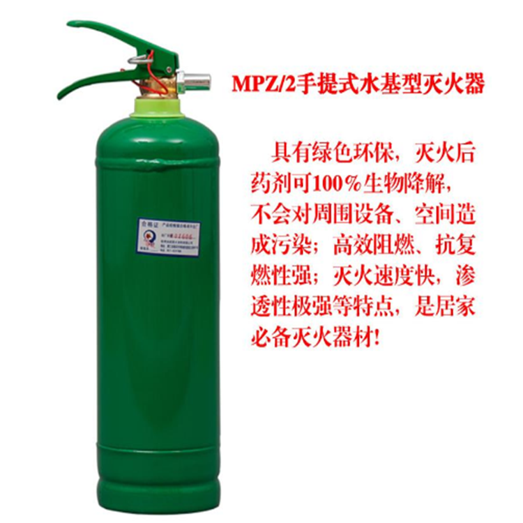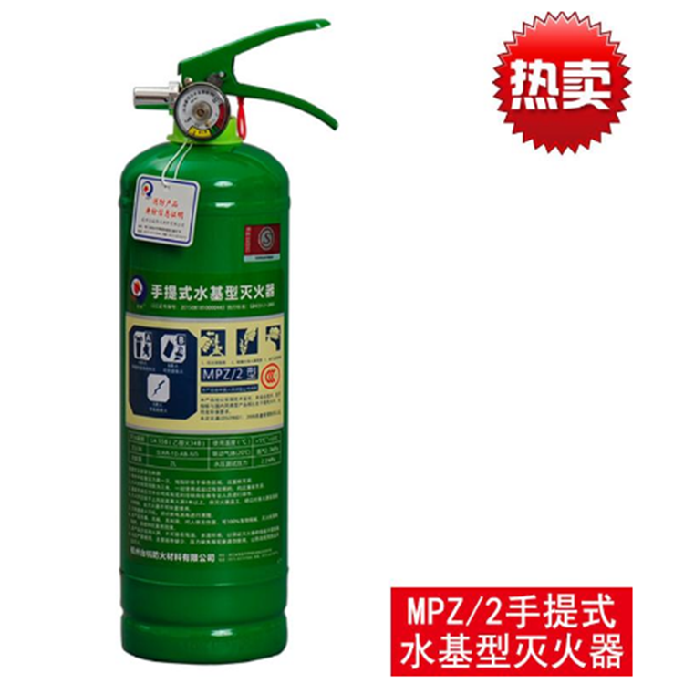 水基型滅火器適用于彌補(bǔ)易燃固體或液體的初起火災(zāi),廣泛應(yīng)用于油田、油庫、輪船、工廠、商鋪等場所,是預(yù)防火災(zāi)發(fā)生確保人民生命財(cái)產(chǎn)的必備消防配備。水型救活器 內(nèi)部裝有AFFF水成膜泡沫救活劑和氮?dú)?,具有操作簡略、救活效率高,使用時(shí)不需倒置、有用期長、抗復(fù)燃、兩層救活等長處,能平息可燃固體、液體的初起火災(zāi),是木竹類、織物、紙張及油類物質(zhì)的開發(fā)加工、貯運(yùn)等場所的消防必備品。