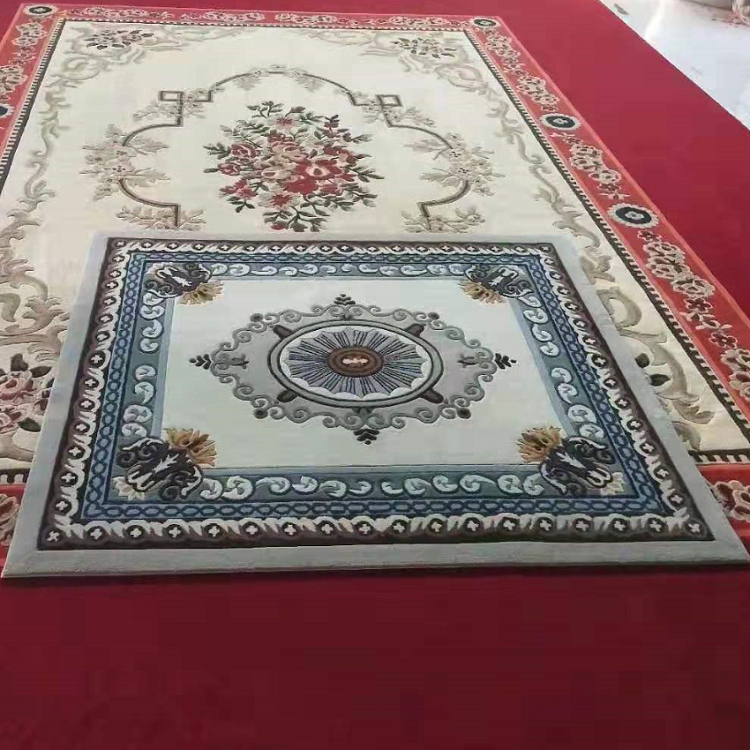 手工地毯采用羊毛或桑蠶絲手工編織,前后經(jīng)過編織、平、片、洗、投、修等全套十余道傳統(tǒng)手工工序加工制作而成,結(jié)構(gòu)緊密,堅(jiān)固挺實(shí);手工地毯注重對細(xì)節(jié)的處理,如織一瓣桃花,可以用十幾種顏色,甚至幾十種顏色來潤色,紅中有粉,粉中有白,白中有紅,向陽的一面顏色可淡一些,背陰的地方顏色可深一些,被另外花瓣遮住的顏色可深一些,露在外面的顏色可淡一些,這是機(jī)織地毯無論如何也達(dá)不到的,也是手工地毯的藝術(shù)價(jià)值所在。