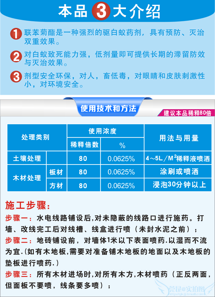 滅白蟻藥 衛(wèi)豹聯(lián)苯菊酯滅白蟻快裝修古建森林苗圃通用