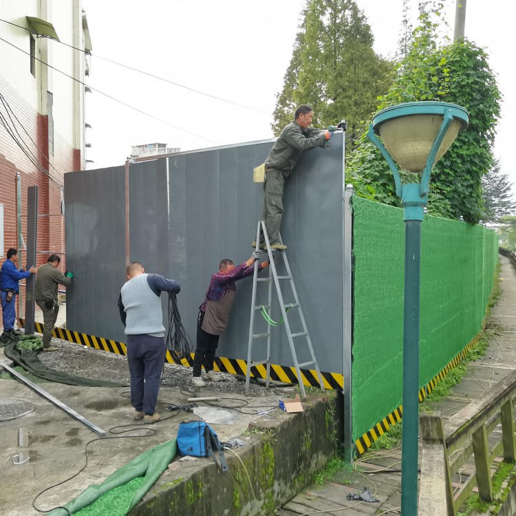 圍檔基腳采用M10水泥砂漿砌筑MU10頁巖磚磚砌0.5*0.5的基礎(chǔ),用于增強(qiáng)圍檔抗風(fēng)穩(wěn)定性;pvc圍擋設(shè)2.5米高,寬3米為一板。施工圍檔做美化處理,噴涂企業(yè)名稱、安全、質(zhì)量、文明施工用語及開發(fā)項(xiàng)目商業(yè)廣告,嚴(yán)禁張貼、涂寫垃圾廣告?! 鷻n施工完畢,板與板之間銜接平順,直線要在一條直線上;板與板不得留有縫隙,即在場(chǎng)外不能看見場(chǎng)內(nèi)施工。圍檔沿線設(shè)置紅燈或者隔段用安全反光錐用于夜間警示。