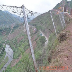 被動防護系統(tǒng)是由鋼絲繩網(wǎng),鋼絲格刪網(wǎng).錨桿,工字鋼柱,上下拉錨繩,減壓環(huán),底座及上下支撐繩等部件構(gòu)成.系統(tǒng)由鋼柱和鋼繩網(wǎng)聯(lián)結(jié)組合構(gòu)成一個整體,對所防護的區(qū)域形成面防護,從而阻止崩塌巖石土體的下墜,起到邊坡防護的作用. SNS被動防護系統(tǒng)的特點在于:系統(tǒng)的柔韌性和欄截強度足以分散傳遞預(yù)計的落石沖計沖擊動能,減壓環(huán)的設(shè)計和采用使系統(tǒng)的抗沖擊能力得到進一步提高.與鋼性攔截與砌漿擋墻相比:該變了原有施工工藝,使工期和資金得到減少.