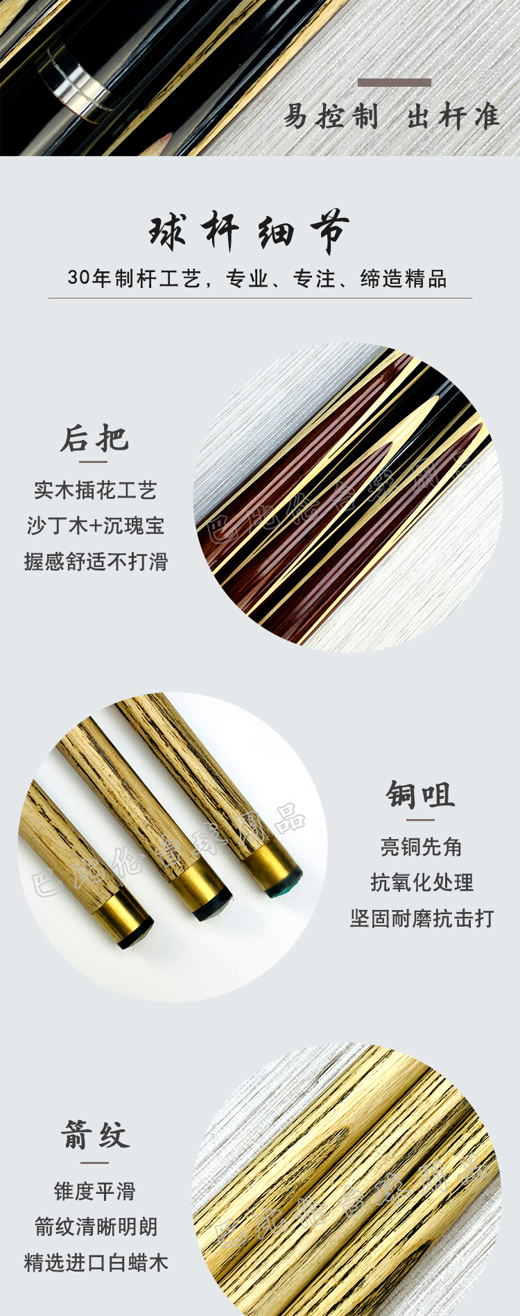 相關(guān)介紹:每一支球桿都是一件藝術(shù)品,給你帶來更好的臺球體驗(yàn),職業(yè)級打感,傳力通透,